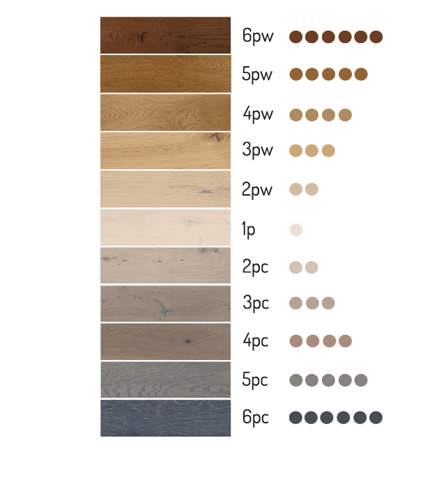 “pw” series (6pw to 2pw): Features classic warm oak tones, perfect for traditional and cozy interiors.
