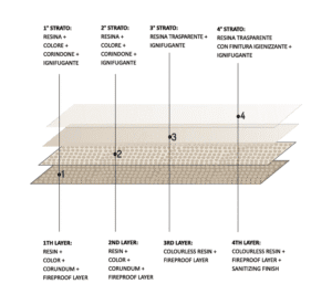 1st Layer: Resin + color + corundum + fire protection