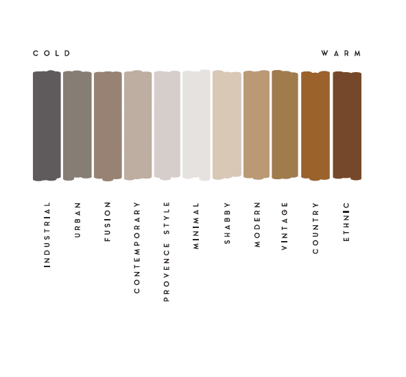 This visual guide illustrates the relationship between wood tone temperatures (cold to warm) and their compatibility with different interior design styles.