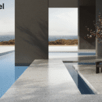 Porcelain has a very low water absorption rate (less than 0.5%), making it resistant to moisture, stains, and mold — essential for patios, terraces, and pool areas.