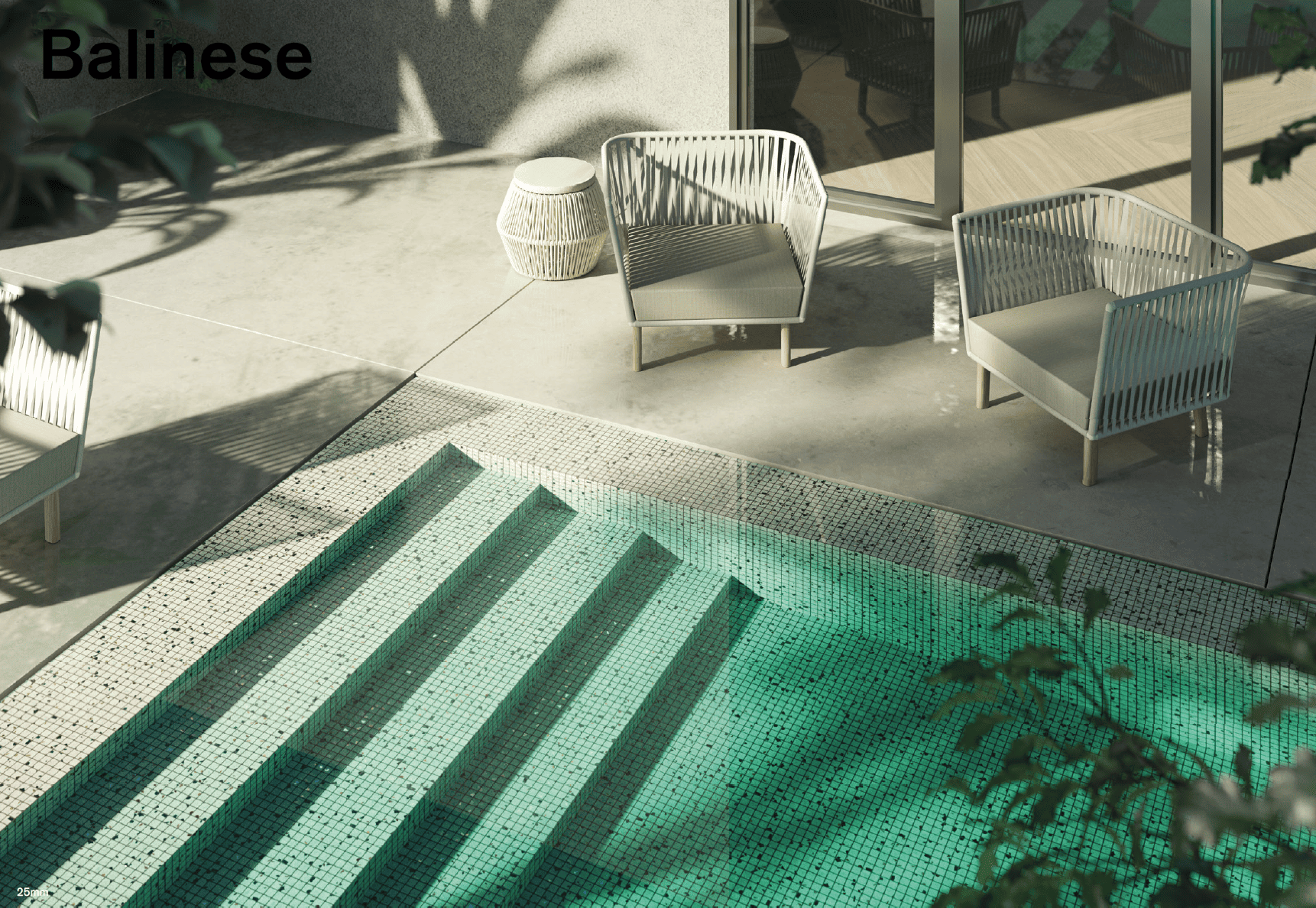 They can be used on walls, floors, pools, furniture, and decorative features—indoors or outdoors.